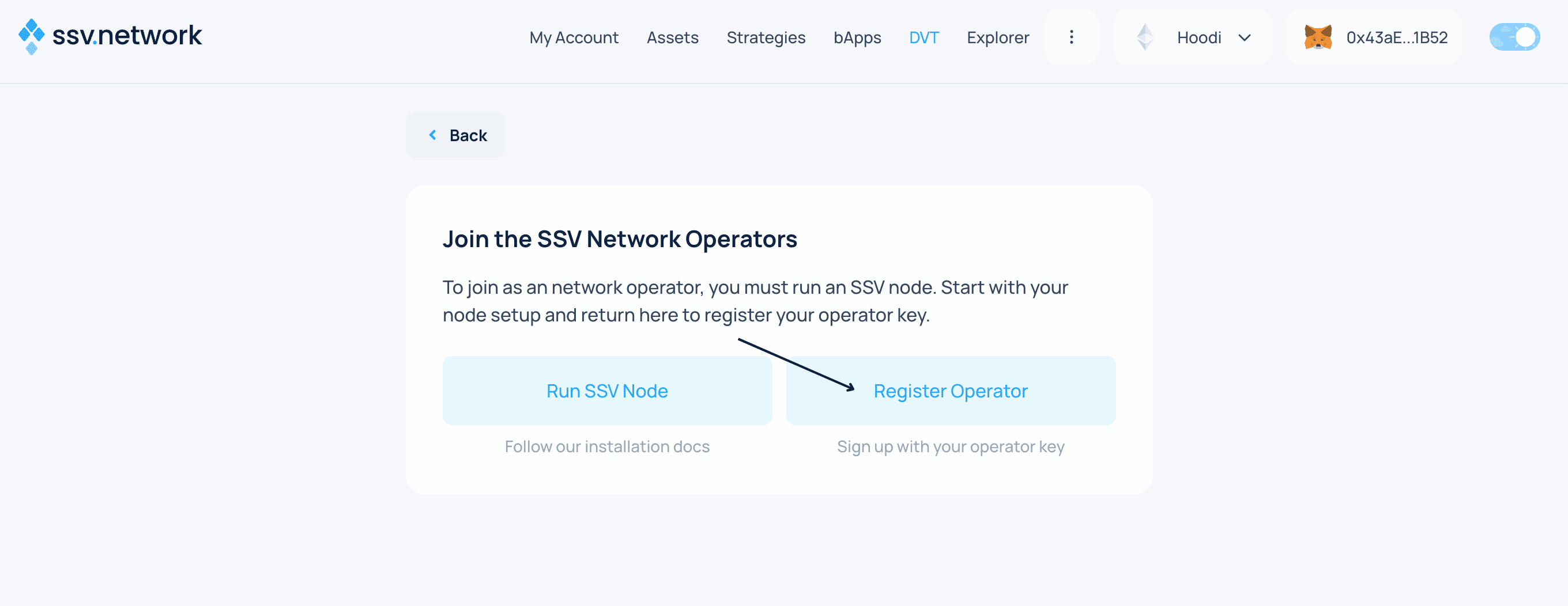 - Paste your Operator Public Key from the previous step and click Register Operator